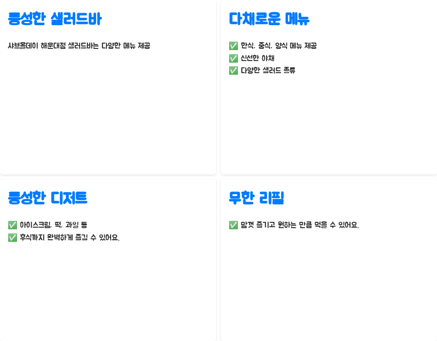 샤브샤브와 샐러드바의 환상적인 만남! 샤브올데이 해운대점은 단순한 샤브샤브 식당을 넘어, 프리미엄 뷔페 경험을 제공합니다.