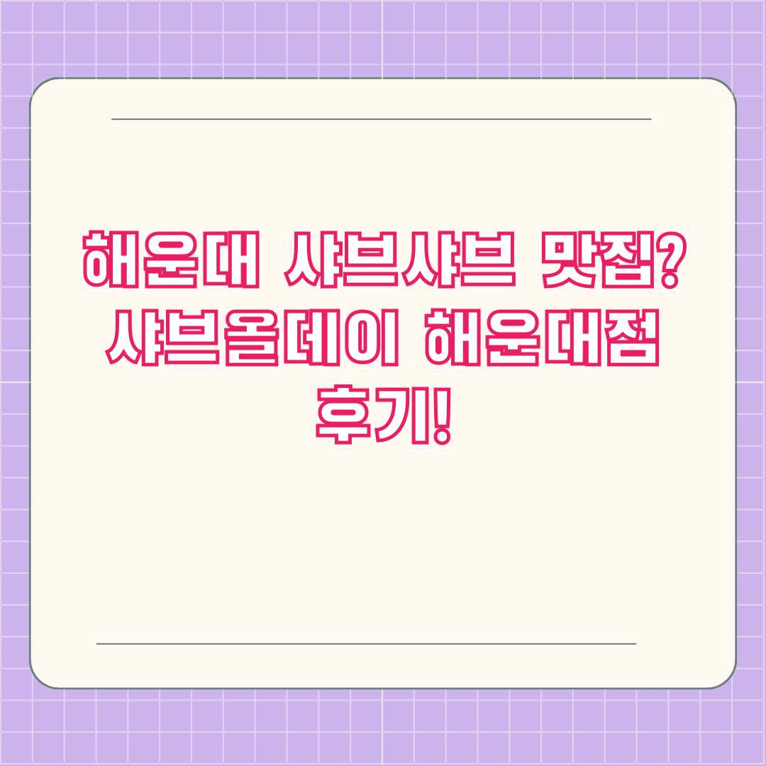 부산 해운대에서 잊지 못할 미식 경험을 선사하는 곳, 샤브올데이 해운대. 무한리필 샤브샤브와 호텔급 샐러드바의 조합이라는 매력적인 조건은 과연 어떤 경험을 선사할까요? 지금부터 샤브올데이 해운대점의 매력에 흠뻑 빠져보실 준비 되셨나요? 푸짐한 양과 뛰어난 맛, 그리고 멋진 분위기까지 완벽한 조화를 이루는 샤브올데이 해운대점의 모든 것을 낱낱이 파헤쳐 보겠습니다. 지금 바로 떠나볼까요?