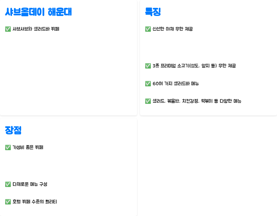 샤브올데이 해운대, 가성비 끝판왕 뷔페를 경험하세요