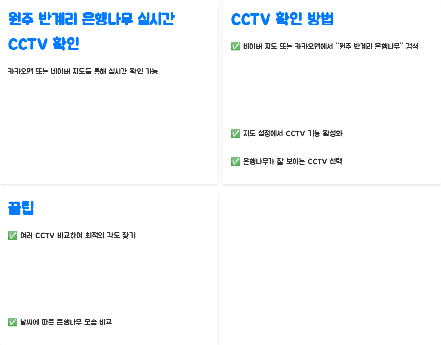 | 실시간 CCTV 확인 방법 | 네이버 지도 또는 카카오맵에서 "원주 반계리 은행나무" 검색 후 CCTV 활성화 |