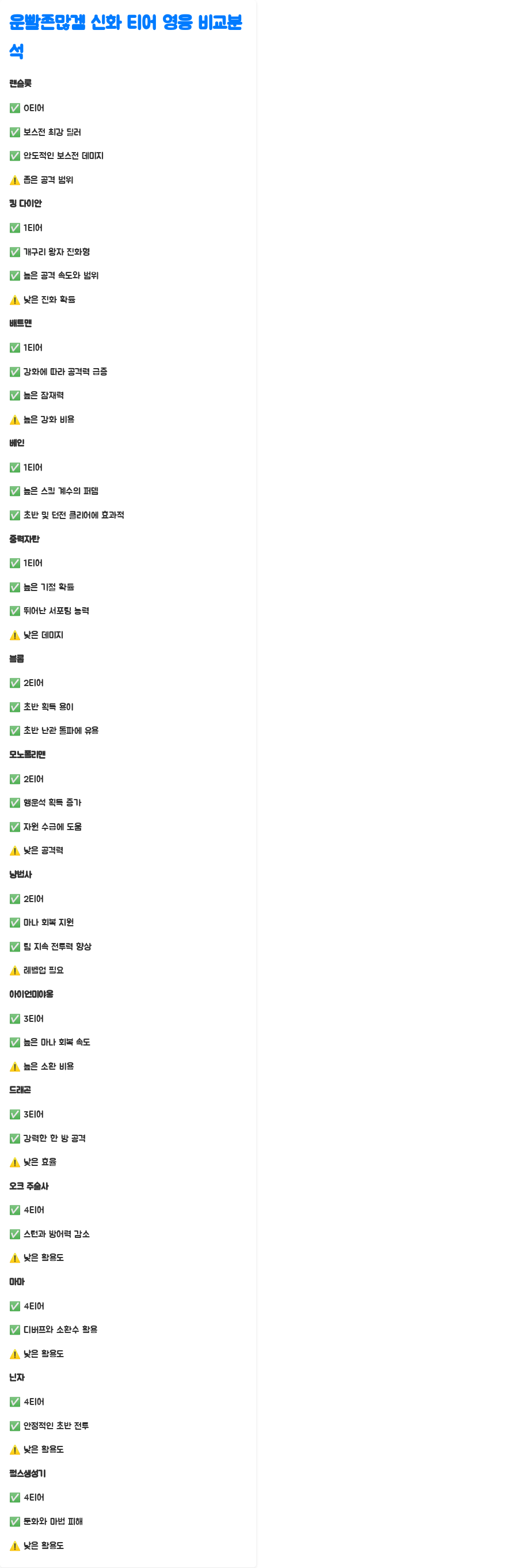 | 마마 | 4티어 | 디버프와 소환수 활용 | 낮은 활용도 | |