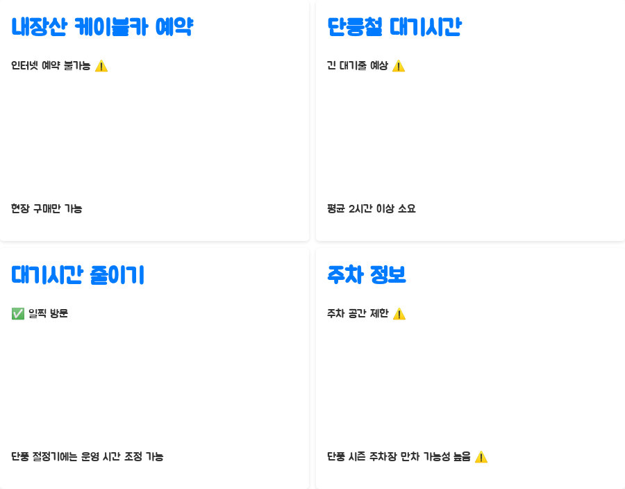| 대기 시간 | 단풍 시즌 2시간 이상 소요 가능 |