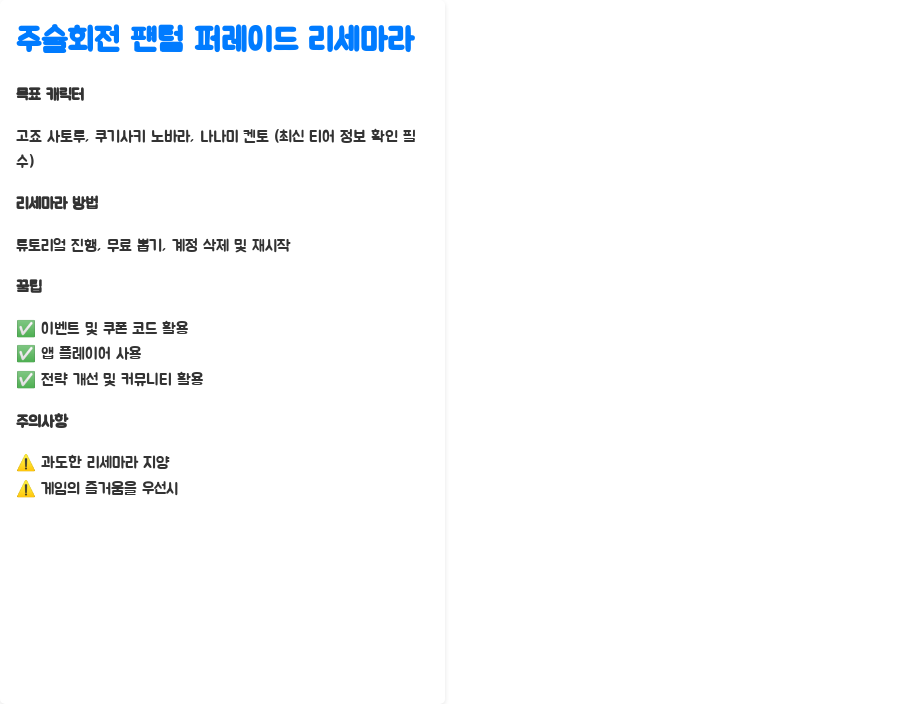주술회전 팬텀 퍼레이드 리세마라, 왜 중요할까요?