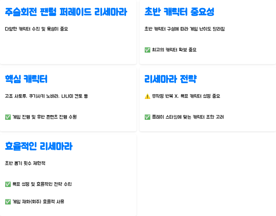 주술회전 팬텀 퍼레이드 리세마라, 핵심 정리