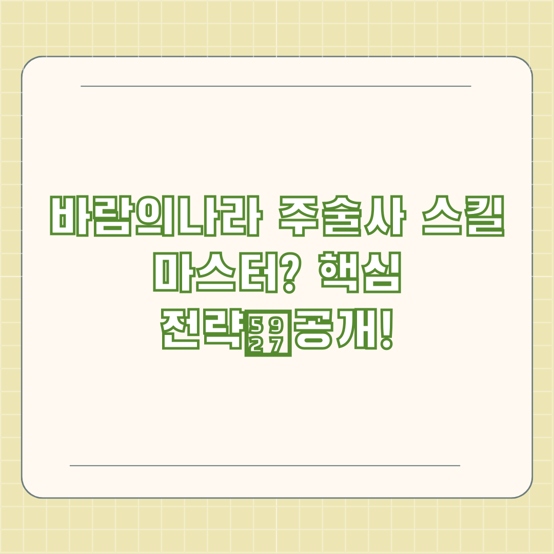바람의 나라 주술사의 스킬은 크게 공격, 방어, 회복, 지원 마법으로 나눌 수 있습니다. 초반 레벨에서는 신수마법을 중심으로 사냥을 하며 레벨을 올리는 것이 효율적입니다. 화염주, 뢰진주, 자무주, 백열주 등 다양한 속성의 신수마법은 사냥터와 몬스터의 속성에 따라 선택적으로 사용하여 효율을 극대화할 수 있습니다.