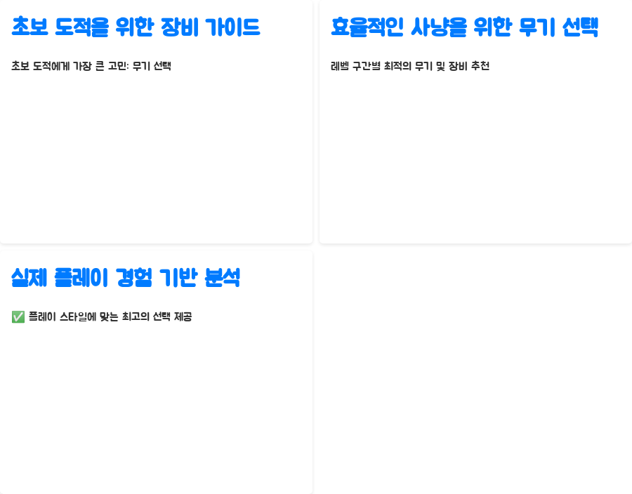 초보 도적분들에게 가장 큰 고민거리 중 하나는 바로 무기 선택일 것입니다. 어떤 무기를 선택해야 효율적인 사냥이 가능할까요?