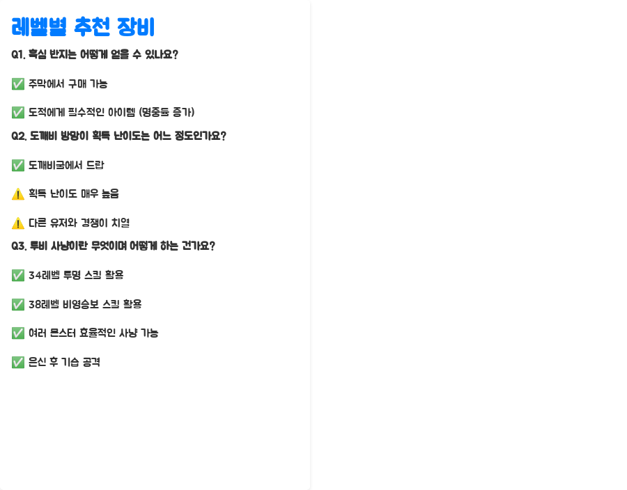돈이 부족한 초보 시절에는 특히나 고민이 될 텐데요. 걱정 마세요! 이 가이드에서는 레벨 구간별로 최적의 무기와 장비를 추천해 드립니다.