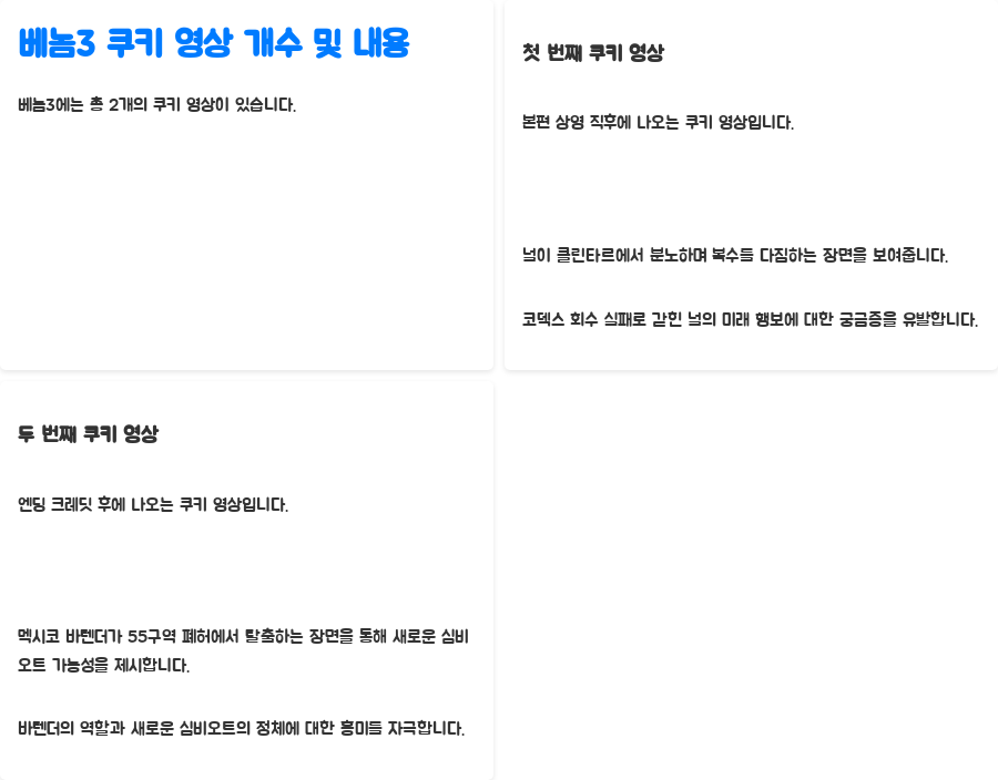 핵심 정리: 베놈3 쿠키 영상 개수와 내용