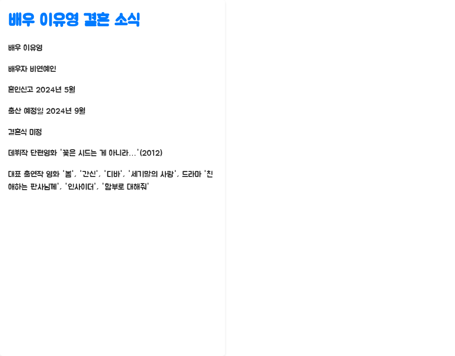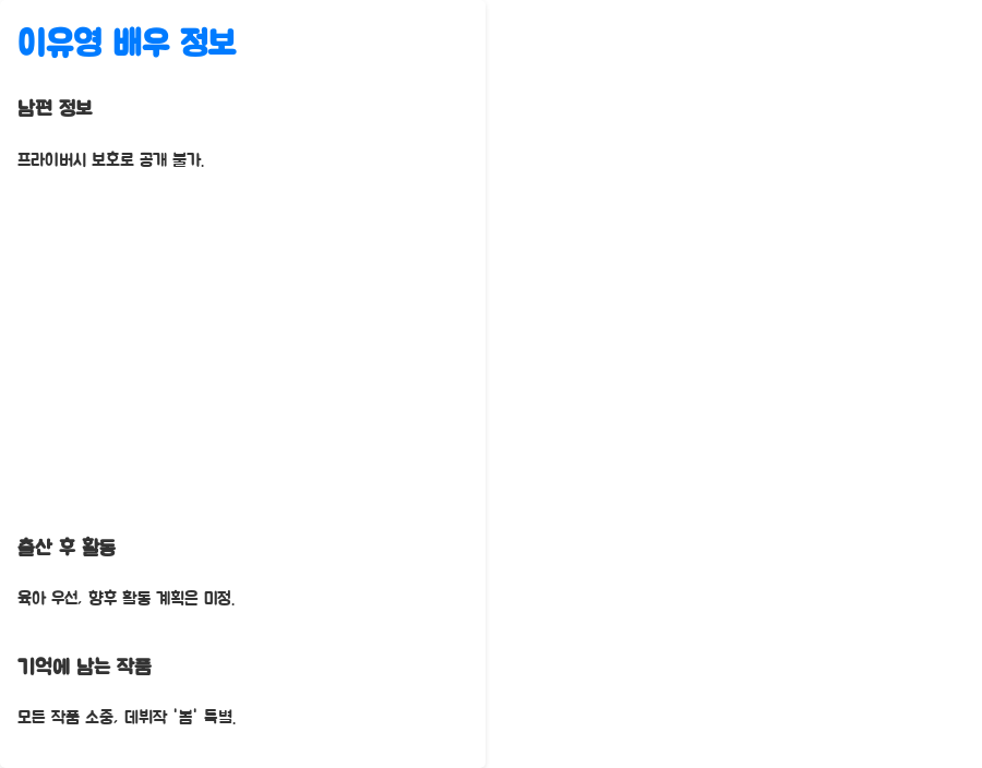 Q1. 이유영 배우의 남편에 대한 정보는 공개될 예정인가요?