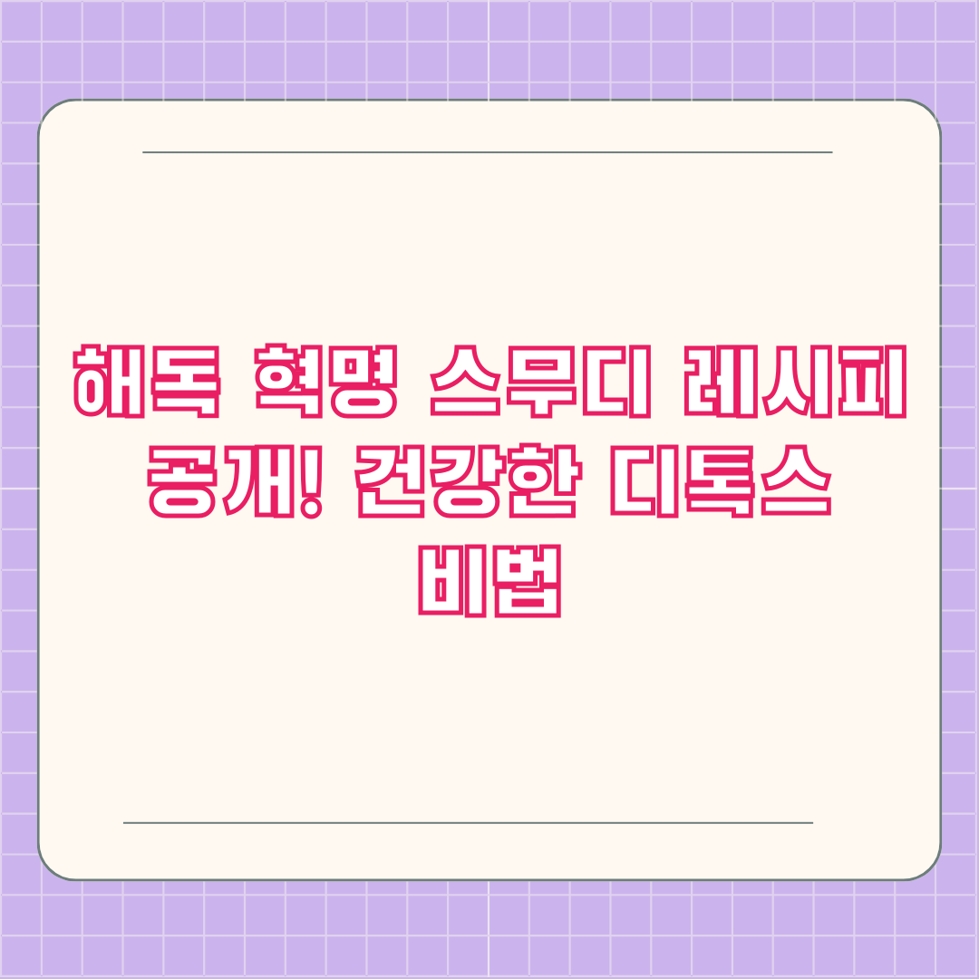 몸속 독소, 제대로 배출하고 싶으세요? 건강한 삶을 위한 혁신적인 방법, 바로 '해독 혁명 스무디'입니다! 최근 폭발적인 인기를 얻고 있는 닥터 라이블리의 『해독 혁명』에 소개된 다양한 스무디 레시피 중에서도 특히 주목받는 '라이블리 스무디'의 효능과 레시피, 그리고 건강한 디톡스를 위한 꿀팁들을 지금 바로 알려드리겠습니다.