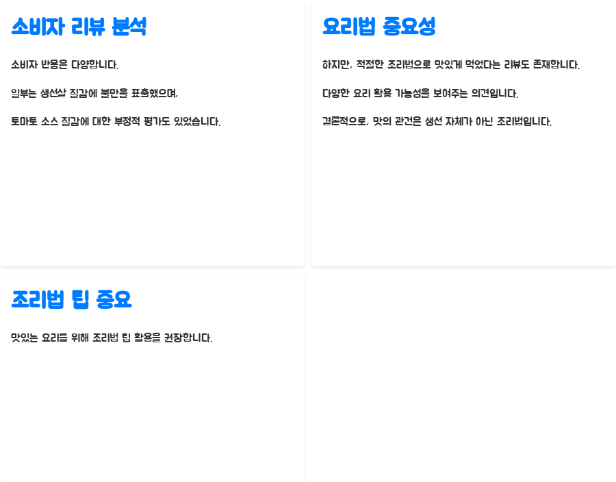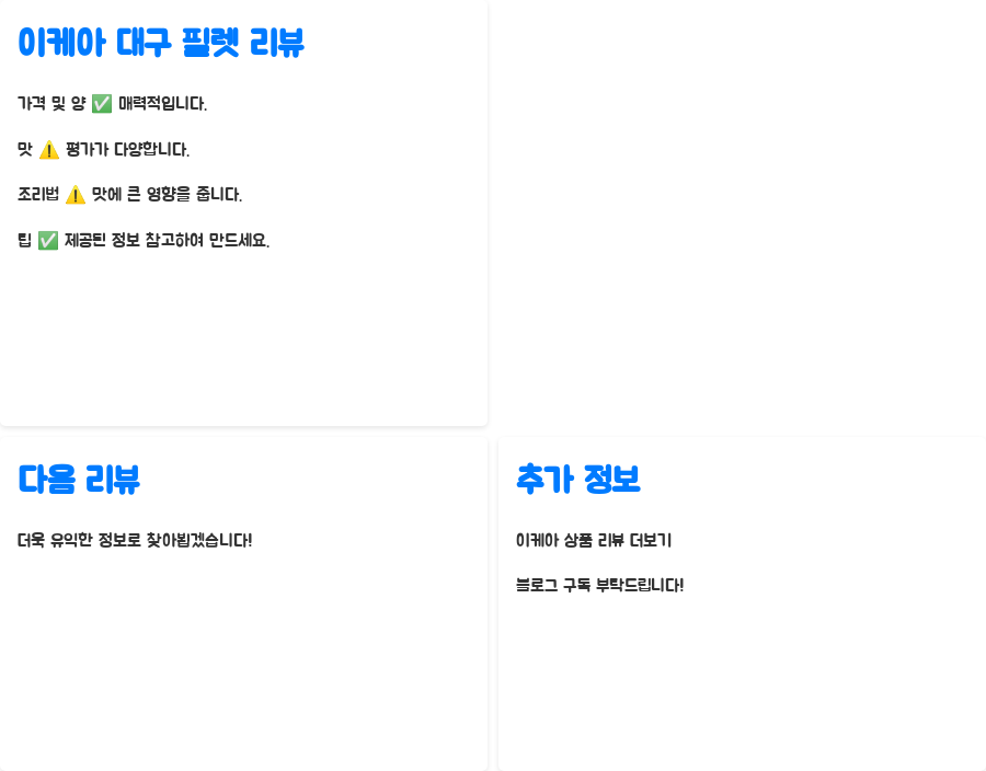 이러한 상반된 리뷰를 통해 알 수 있는 점은, 이케아 대구 필렛 자체의 맛보다는 조리법이 맛의 핵심임을 알 수 있습니다.