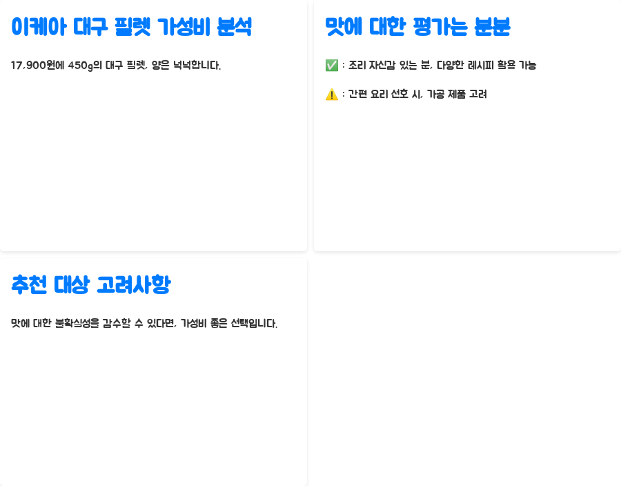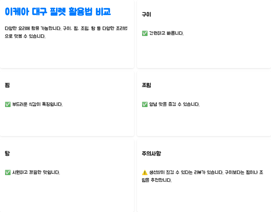 반면, 간편하게 맛있는 대구 요리를 원하는 분이라면, 조금 더 비싸더라도 가공이 완료된 제품을 선택하는 것이 나을 수도 있습니다.