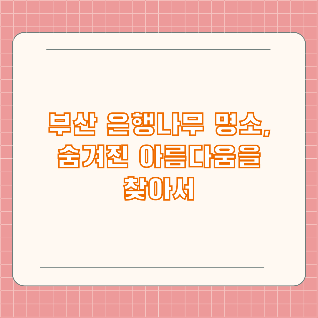 부산 시내의 아름다운 은행나무 길부터 주변 지역의 숨겨진 보석 같은 장소까지, 다양한 매력을 가진 은행나무 명소들을 통해 가을의 추억을 만들어보세요.
