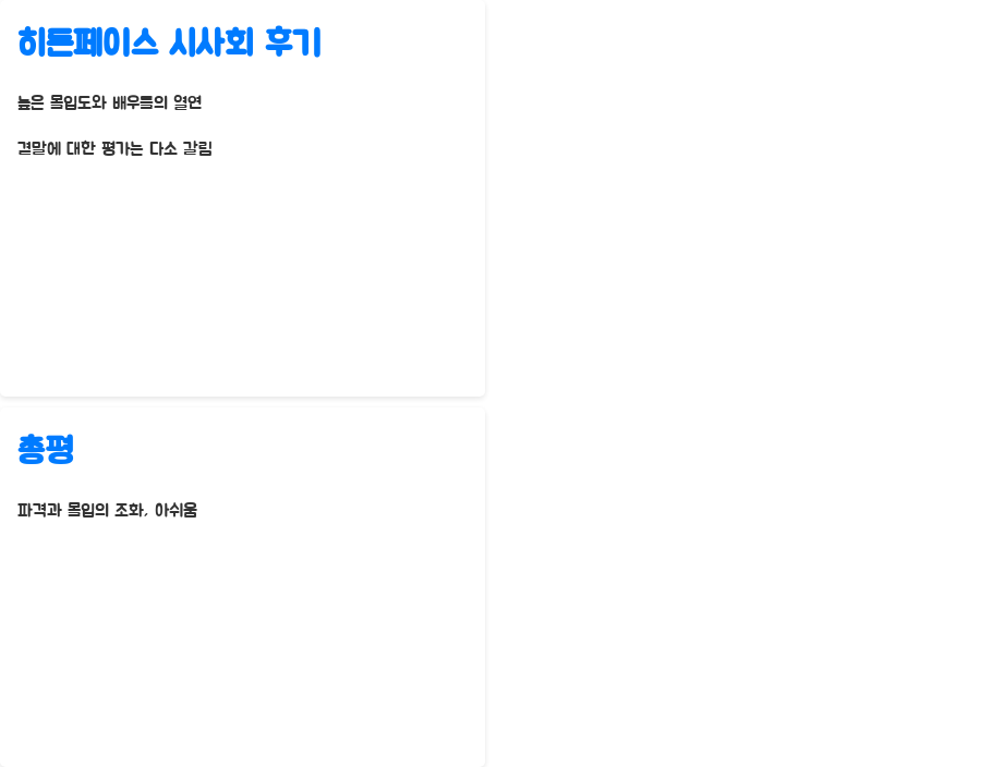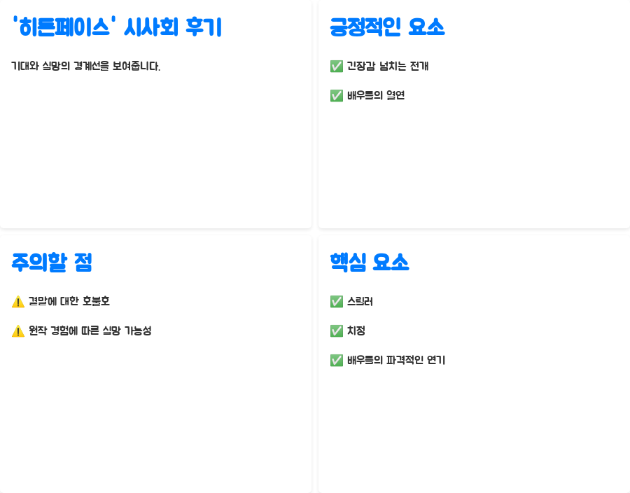 '히든페이스' 시사회 후기는 기대감과 우려를 동시에 보여줍니다.