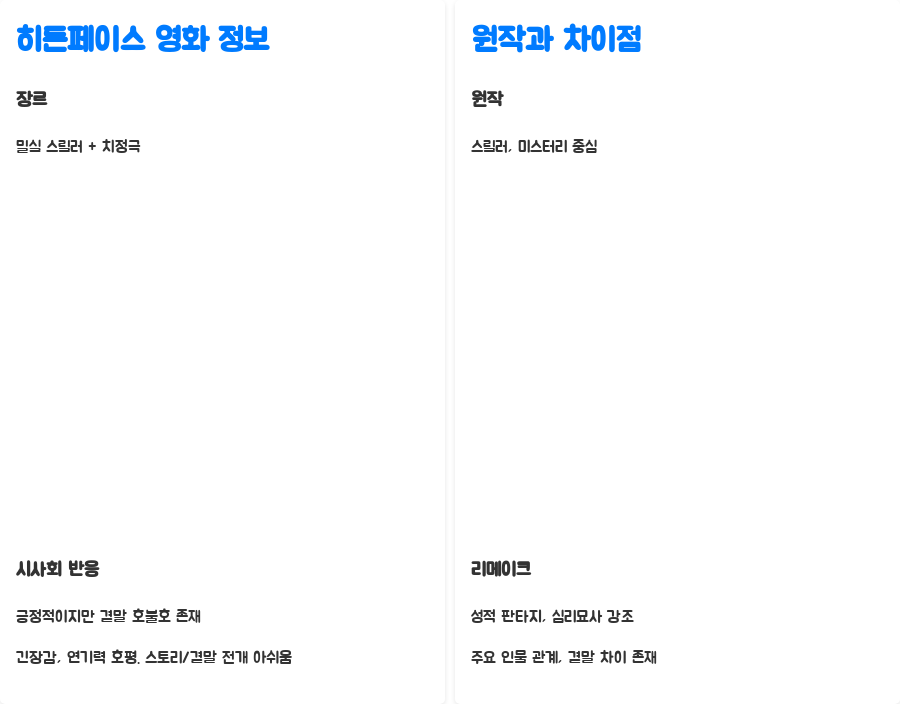저는 여러 시사회 후기를 분석하고, 다양한 관점을 종합하여 여러분께 '히든페이스'에 대한 궁금증을 해소해 드리고자 합니다.
