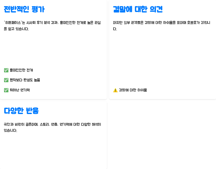 하지만 일부 관객들은 결말에 대한 아쉬움을 표하며 호불호가 갈리는 양상을 보였습니다.