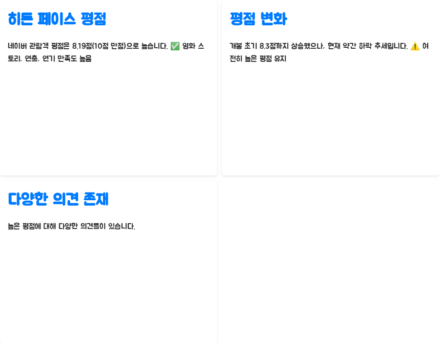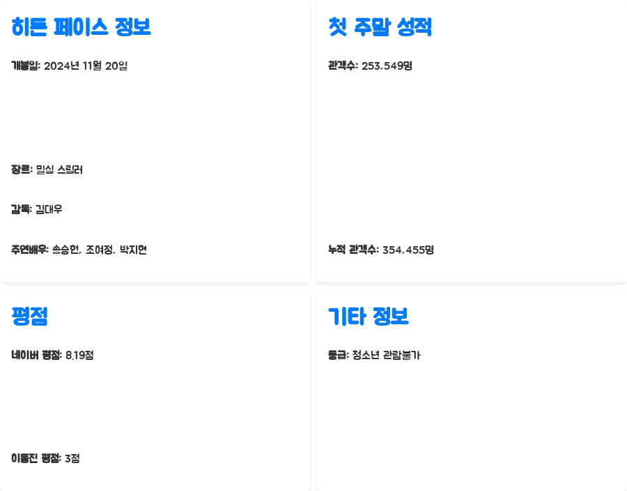 이 글에서는 '히든 페이스'의 흥행 성적과 함께 관객 평점 및 전문가 평가까지 꼼꼼하게 분석해 드리겠습니다.
