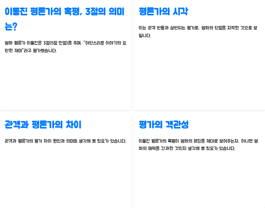 과연, 이동진 평론가의 혹평은 영화의 본질을 제대로 드러내고 있는 것일까요, 아니면 오히려 영화의 매력을 간과한 것일까요?