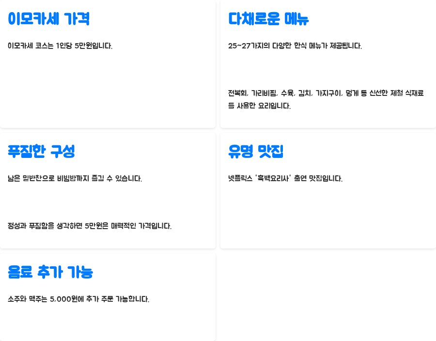 | 가격 | 1인당 5만 원 (주류 별도) |