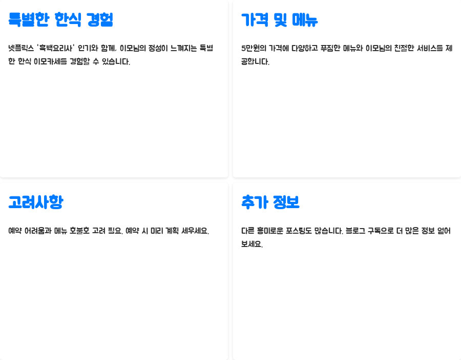 오늘 알아본 내용 어떠셨나요? 즐거운 술상은 넷플릭스 '흑백요리사'의 인기와 함께 이모님의 정성이 느껴지는 특별한 한식 이모카세를 경험할 수 있는 곳입니다.
