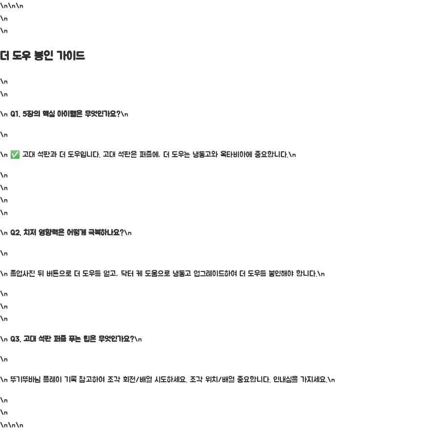 이 글에서는 뚜기뚜바님의 플레이 기록과 추가 정보를 바탕으로 좋피위피 5장의 핵심 내용과 공략법을 자세히 알아보겠습니다.