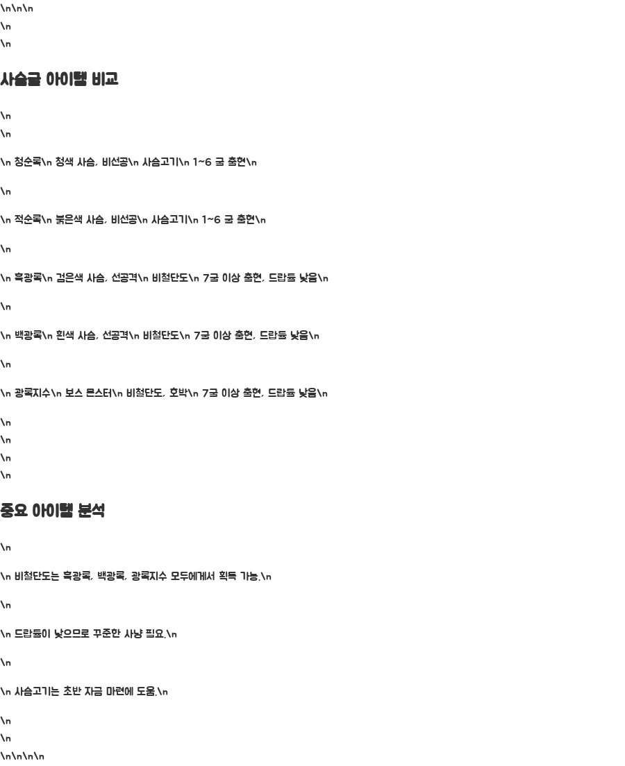 사슴굴에서 얻을 수 있는 아이템 비교 분석