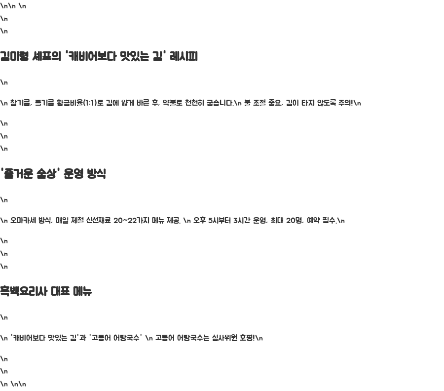 | 운영 식당 | 서울 도봉구 '즐거운 술상' 오마카세 한식당 |