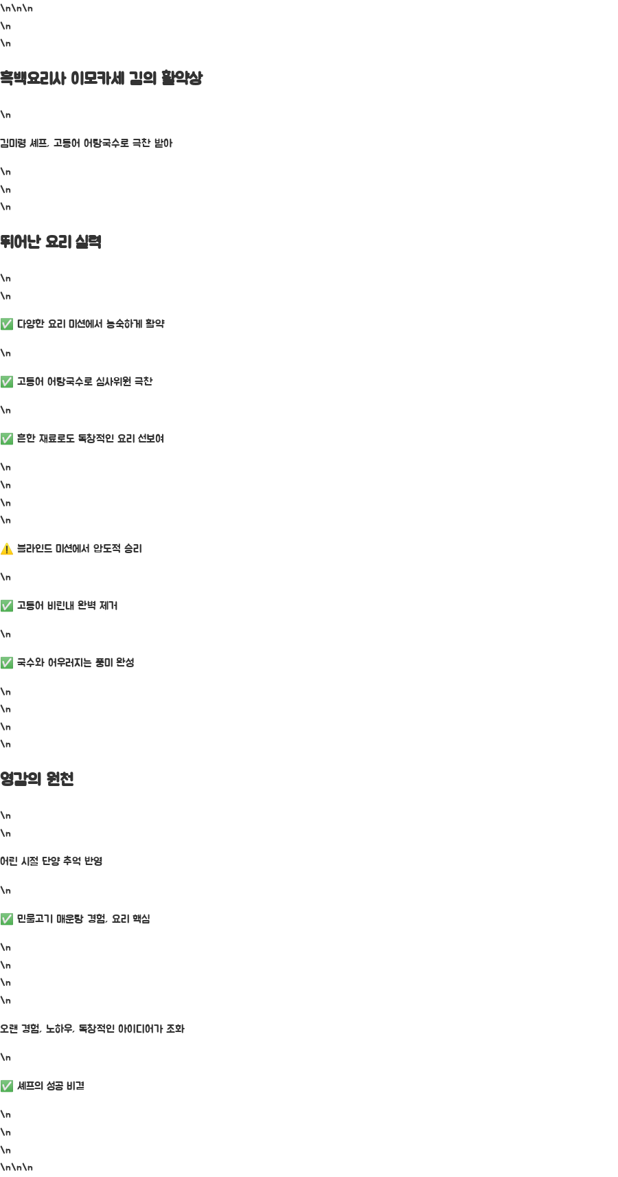 흑백요리사 이모카세 김의 활약상: 고등어 어탕국수의 마법