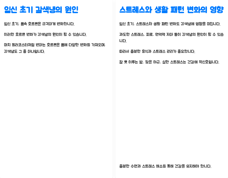 또한, 임신 초기에는 스트레스와 생활 패턴의 변화도 영향을 미칩니다.