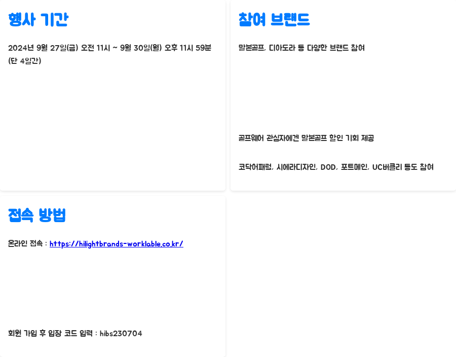 | 행사 장소 | 온라인 (https://hilightbrands-worklable.co.kr/) |