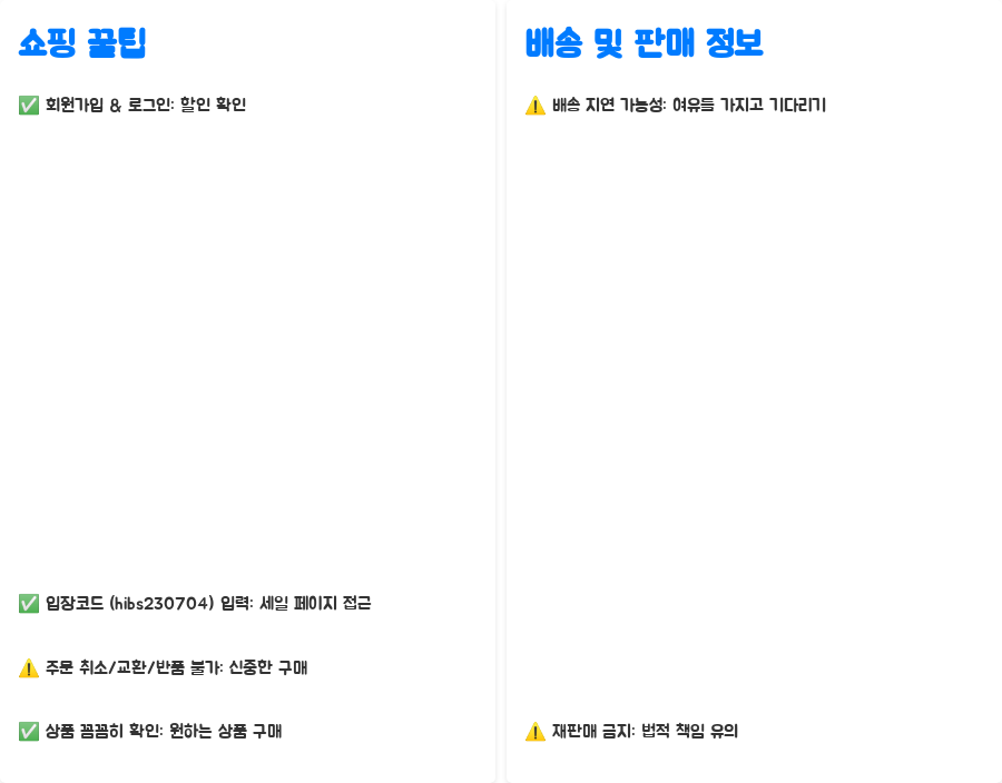 하지만, 주문 취소 및 교환 불가, 배송 지연 가능성 등 유의사항을 꼭 숙지하시고 신중하게 쇼핑하세요!