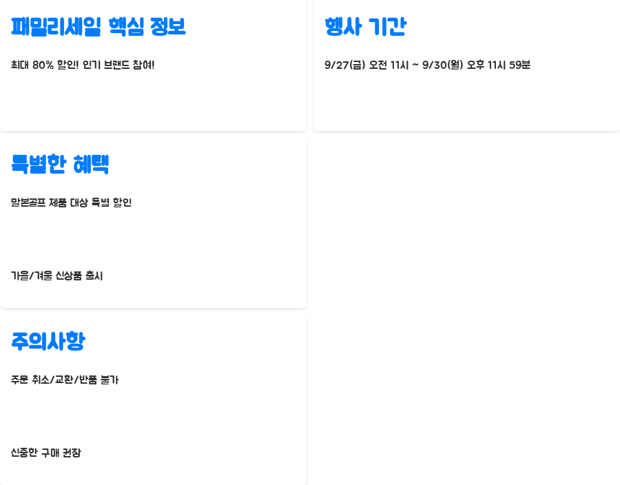 | 행사 기간 | 2024년 9월 27일(금) 오전 11시 ~ 9월 30일(월) 오후 11시 59분 |