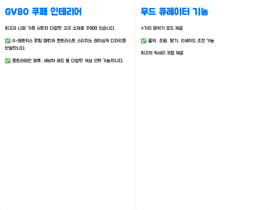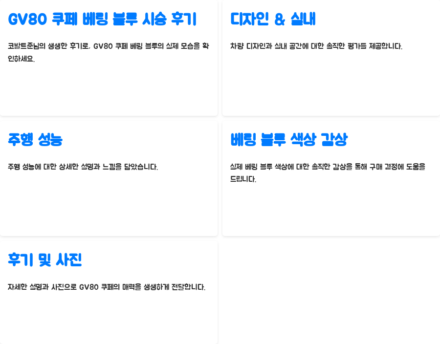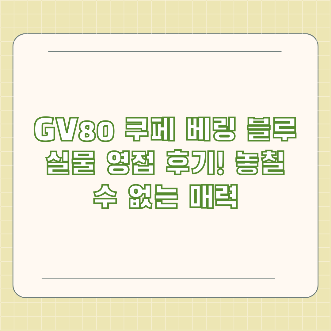 디자인과 실내 공간, 주행 성능까지, 코발트준님의 솔직한 후기는 GV80 쿠페 구매를 고려하시는 분들에게 귀중한 정보를 제공합니다.