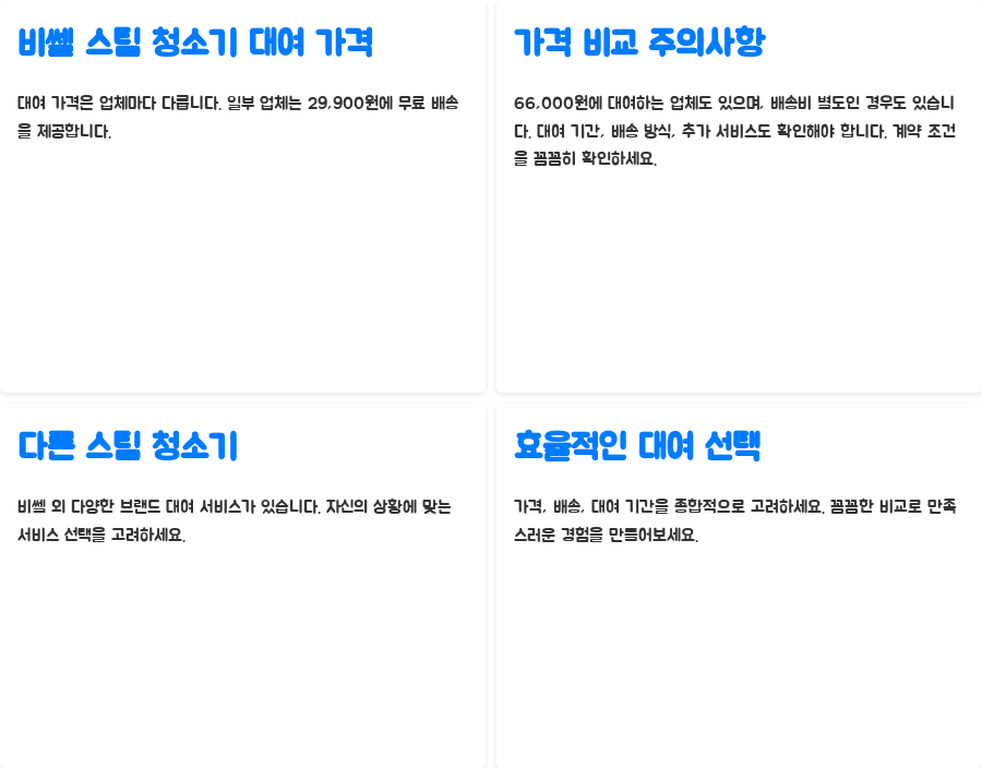 비쎌 스팀 청소기를 대여하기 전에 꼭 확인해야 할 정보들이 있습니다.