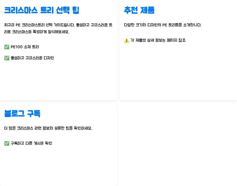 오늘은 최고급 PE 크리스마스트리 선택 팁과 추천 제품들을 살펴보았습니다.