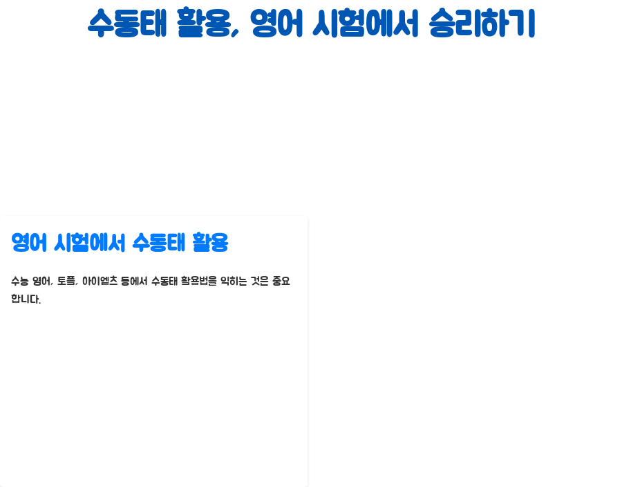자, 이제 수동태에 대한 이해가 좀 더 깊어졌을 거예요. 그렇다면 수능 영어, 토플, 아이엘츠와 같은 영어 시험에서는 수동태를 어떻게 활용해야 할까요?