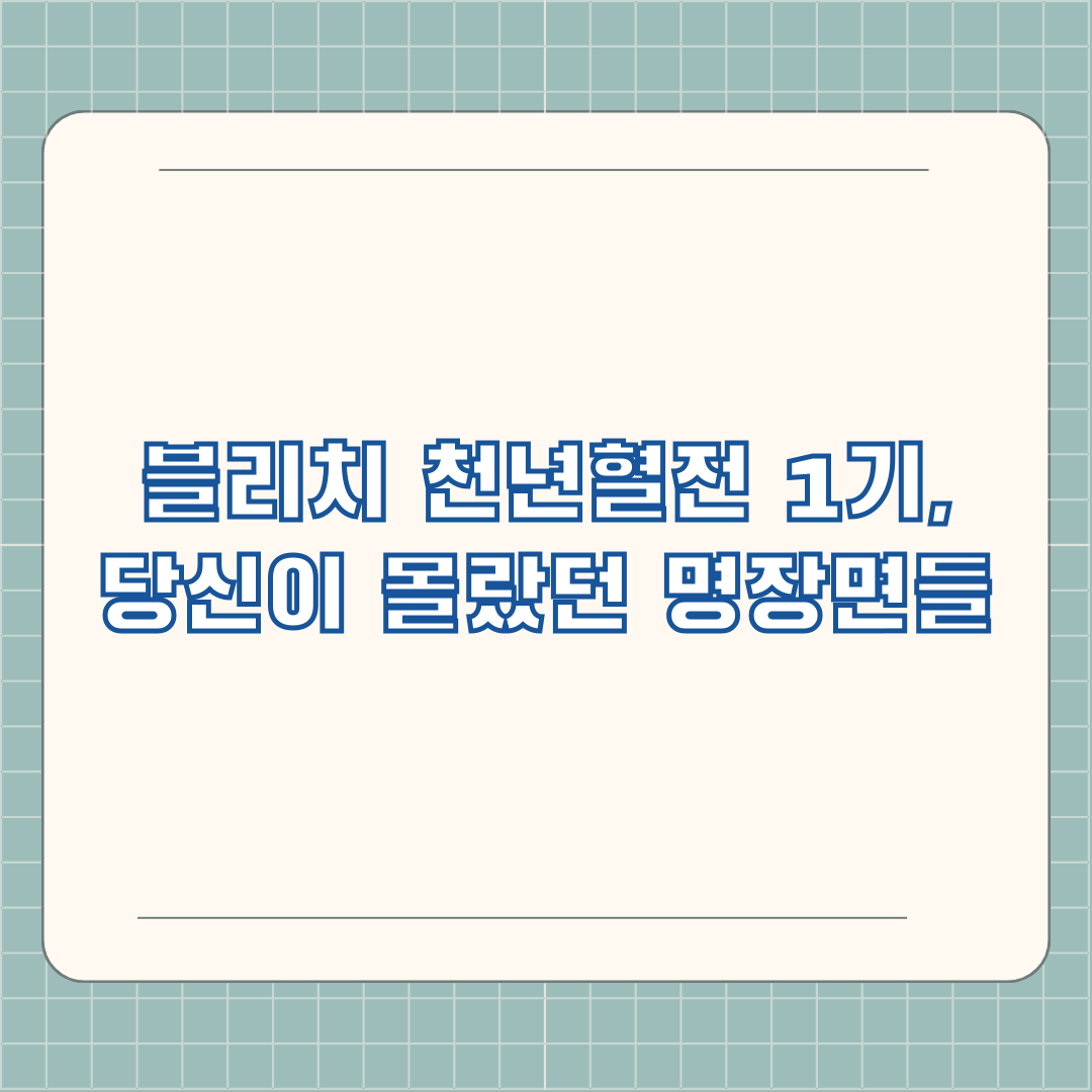 핵심 정리: 블리치 천년혈전 1기, 놓치면 후회할 명작!