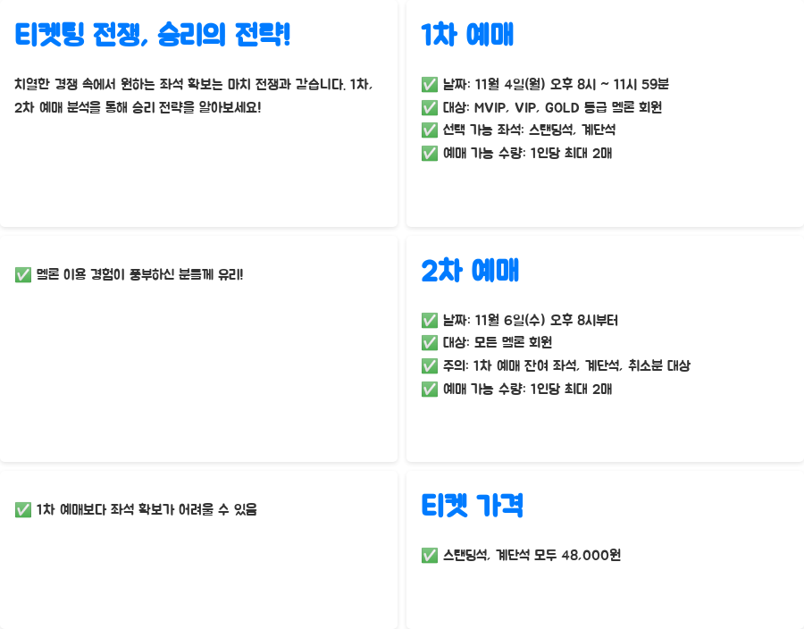 | 1차 예매 대상 | MVIP, VIP, GOLD 등급 회원 |