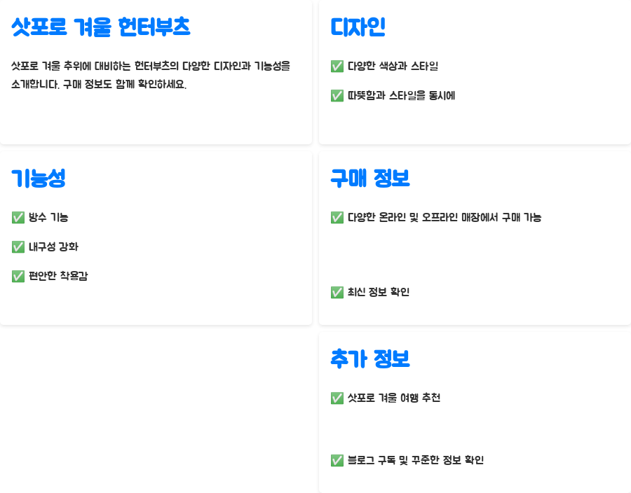 오늘 삿포로에서 인기있는 헌터부츠에 대해 알아보았습니다. 다양한 디자인과 기능성, 그리고 구매 정보까지 꼼꼼하게 살펴보았는데요, 오늘 알아본 내용 어떠셨나요?