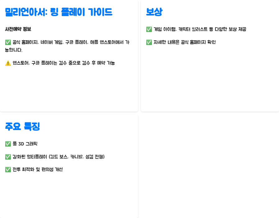 오늘 알아본 밀리언아서: 링 사전예약 정보 어떠셨나요? 지금 바로 사전예약에 참여하시고, 세계를 구원할 아서의 모험을 시작해보세요!