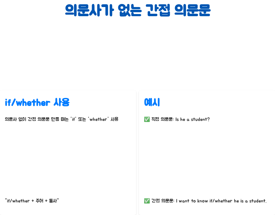 예를 들어, "Is he a student?" (그는 학생인가요?) 를 간접 의문문으로 바꾸면 "I want to know if/whether he is a student." (그가 학생인지 알고 싶어요.) 와 같이 됩니다.
