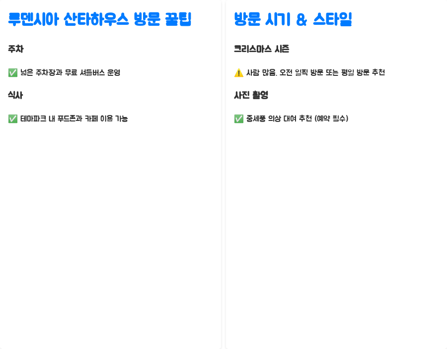 루덴시아 산타하우스를 더욱 즐겁게 방문하기 위한 몇 가지 팁을 알려드리겠습니다.