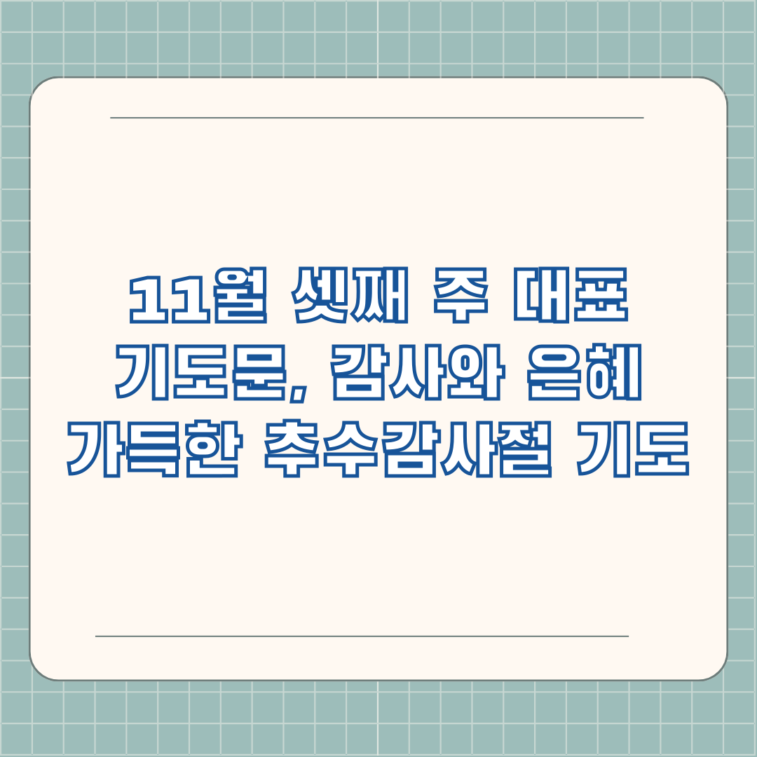 11월 셋째 주 대표 기도문은 추수감사주일을 기념하며 하나님께 드리는 감사와 찬양이 핵심입니다.
