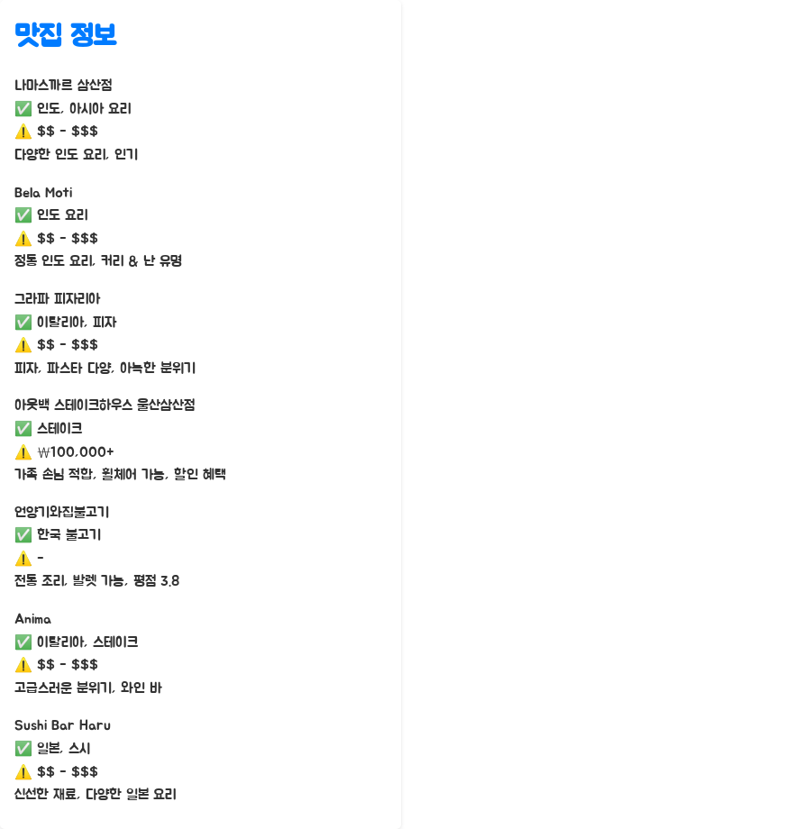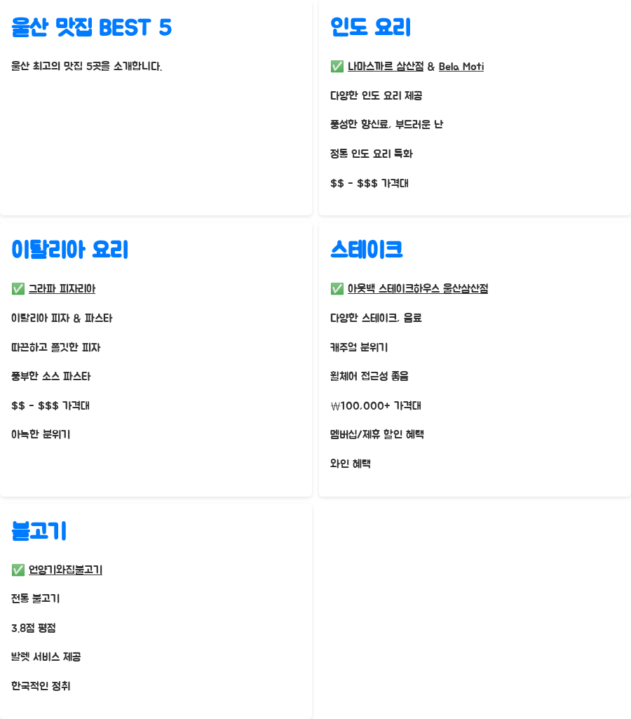 울산에서 빼놓을 수 없는 맛집들을 엄선하여 소개합니다.