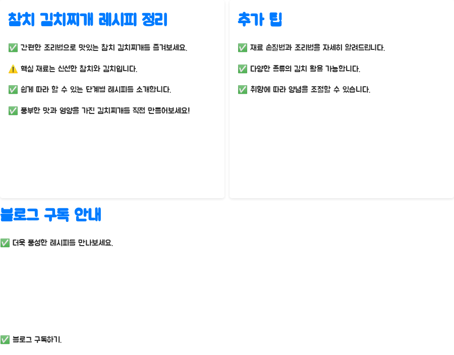 다양한 팁과 함께, 초보자도 쉽게 따라 할 수 있는 레시피를 알려드릴게요. 자취생, 주부, 요리 초보 모두 주목! 이 레시피만 따라 하면 실패 없이 맛있는 참치 김치찌개를 끓일 수 있습니다.