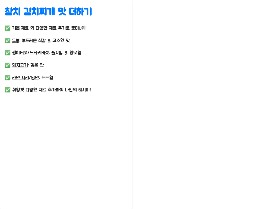 그중에서도 간편하게 만들 수 있으면서 맛까지 보장된 참치 김치찌개, 어떻게 하면 더 맛있게 끓일 수 있을까요?