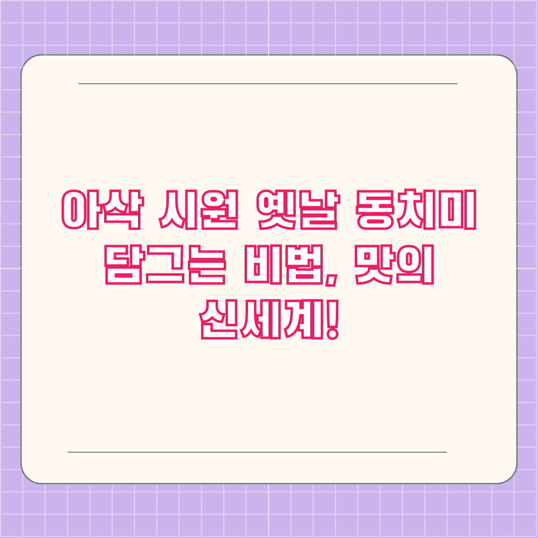 깊은 맛과 향을 자랑하는 옛날 동치미, 어떻게 담그는지 궁금하시죠? 지금부터 제대로 된 옛날 동치미 담그는 비법을 공개합니다! 놓치면 후회할 꿀팁들, 기대하셔도 좋습니다.