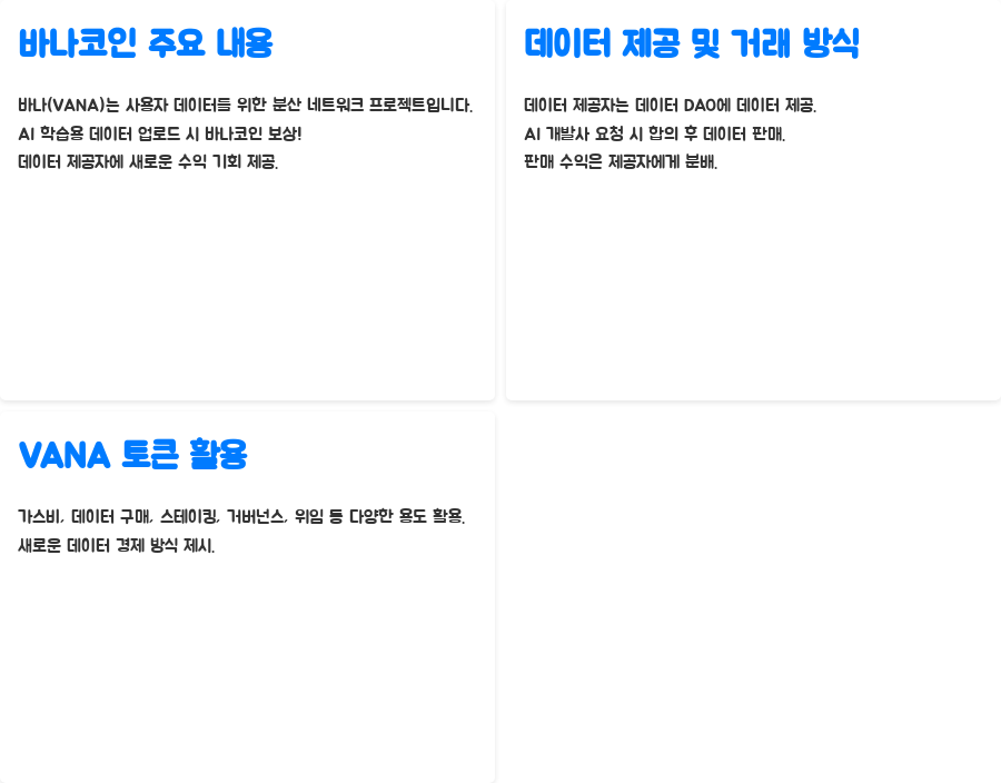 바나코인은 데이터 경제 활성화라는 새로운 패러다임을 제시하며, 데이터 제공자와 AI 개발사 모두에게 이익을 가져다주는 선순환 구조를 만들어가고 있습니다.