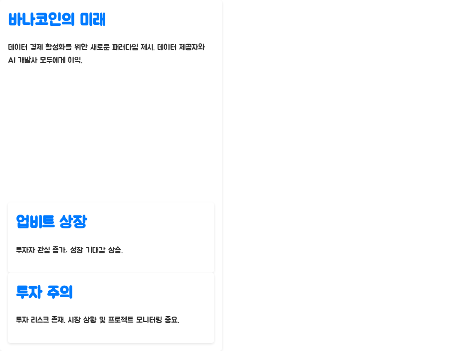 다만, 모든 투자와 마찬가지로 **바나코인 투자에도 리스크가 존재함**을 잊지 말아야 합니다. 시장 상황과 프로젝트의 발전 상황을 꾸준히 모니터링하며 신중하게 투자해야 합니다.