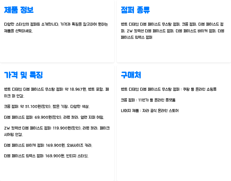 | 크롭 점퍼 | 약 51,100원 (할인 적용 시) | 짧은 기장, 다양한 색상 | 11번가 등 온라인 플랫폼 |